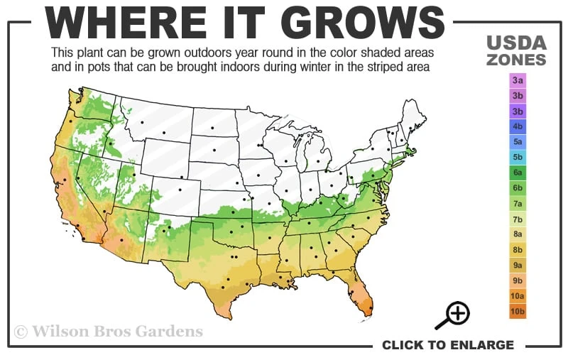 Note: Â For our customers who live and garden north of USDA Plant Hardiness Zone 6b, where this Eucalyptus is not winter hardy, you’ll be happy to know it can be grown in containers that can be brought indoors during winter and placed back outside when temperatures warm up in spring.